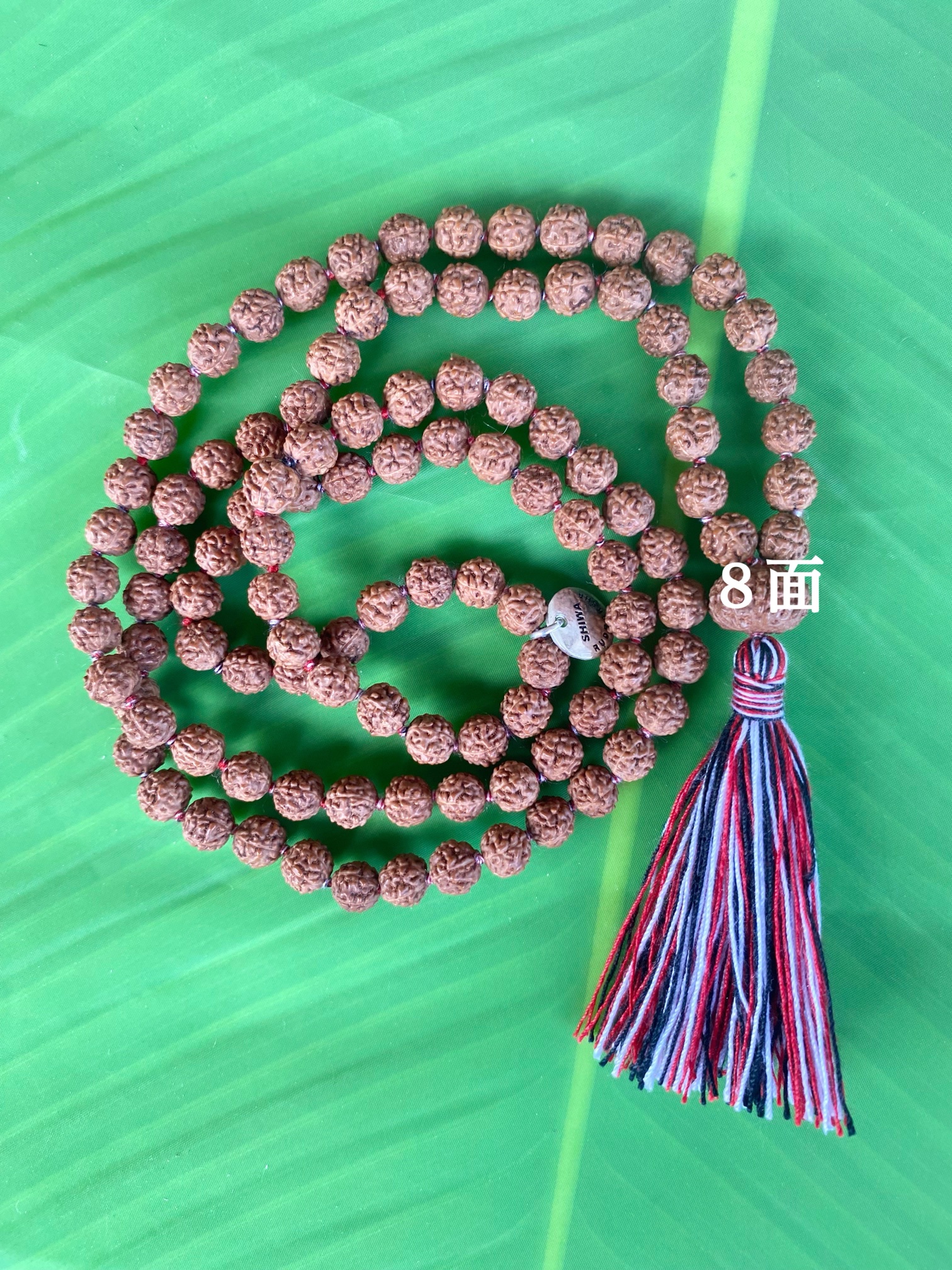 グルビーズにルドラクシャ8面ガネーシャを組み入れた108粒マーラーです。